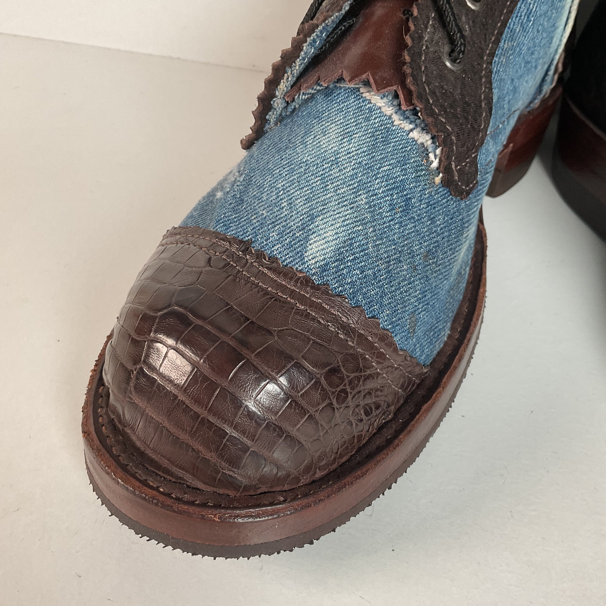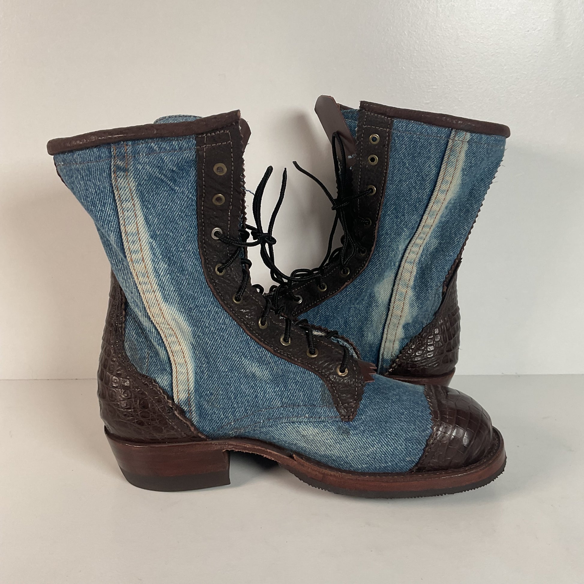 Denim Packer Boots | Caiman Cap Toe | Shark Skin Collar | Men’s 8 | Women’s 9.5