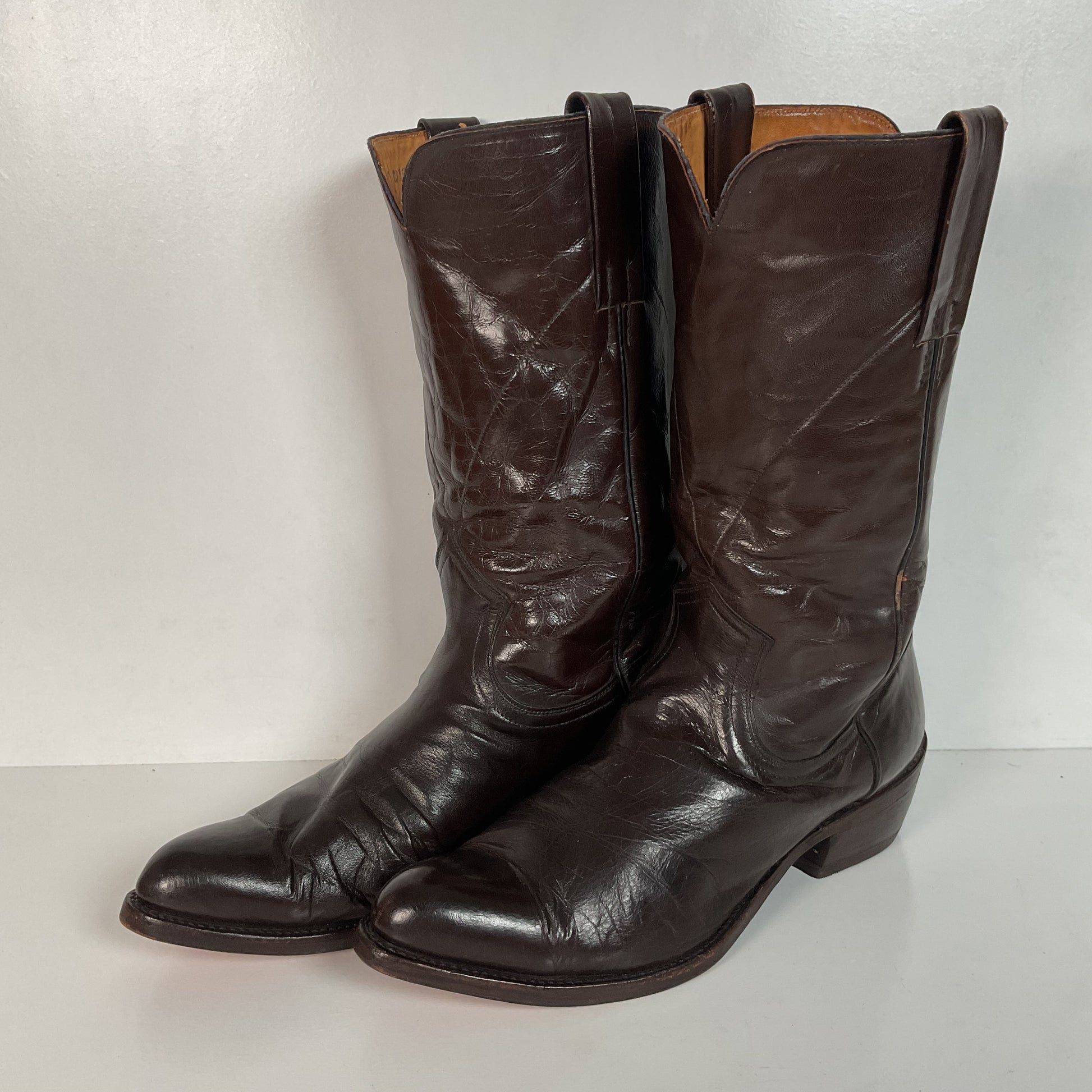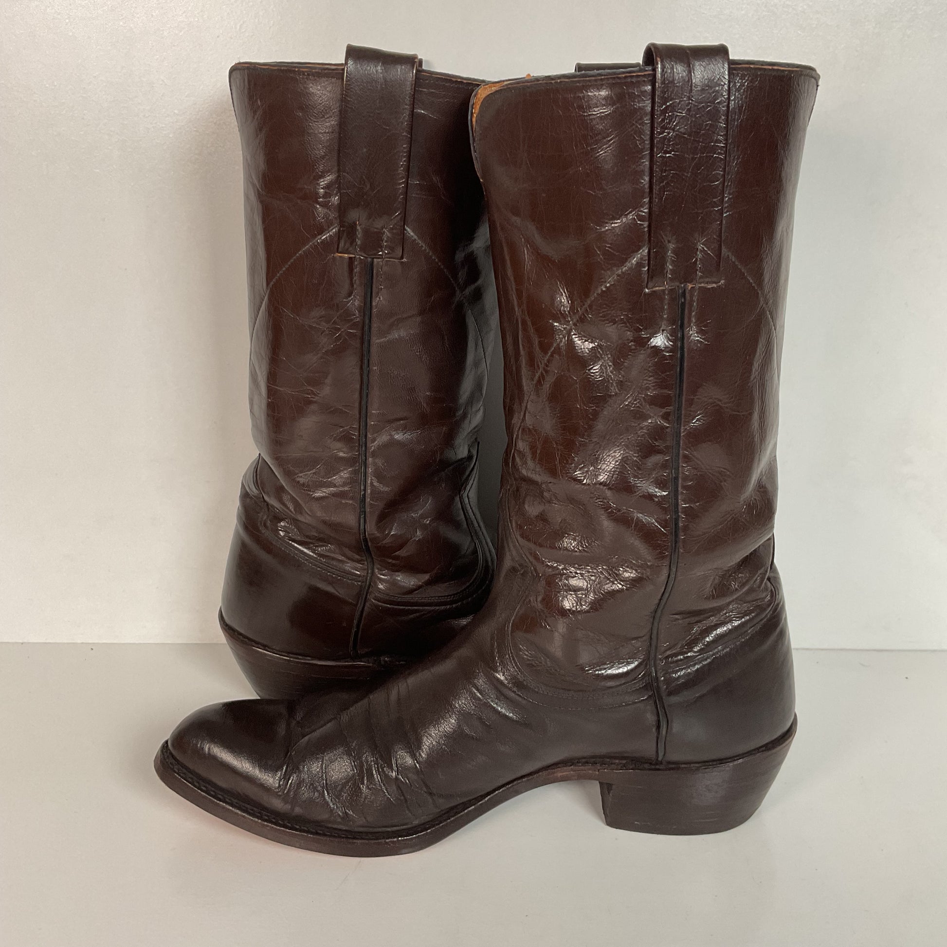 Vintage 1950s Frye Authentic Cowboy Boots 8.5 D Dark Brown Calfskin