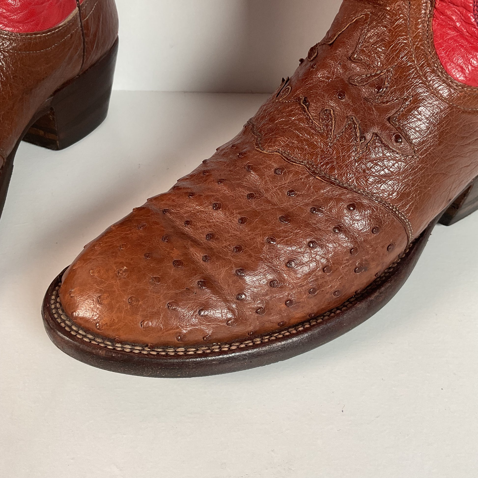 Lucchese 2000 Ostrich Quill Cowboy Boots | Exotic | Tooled Inlay | Men’s 8.5 D