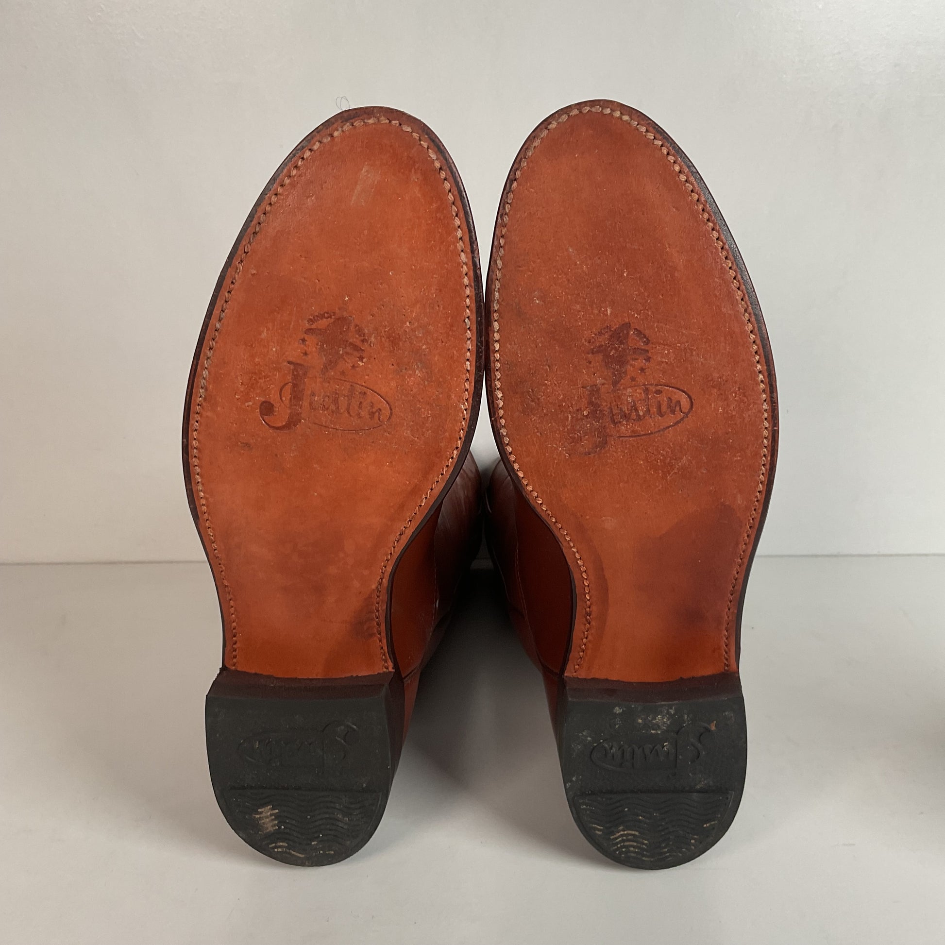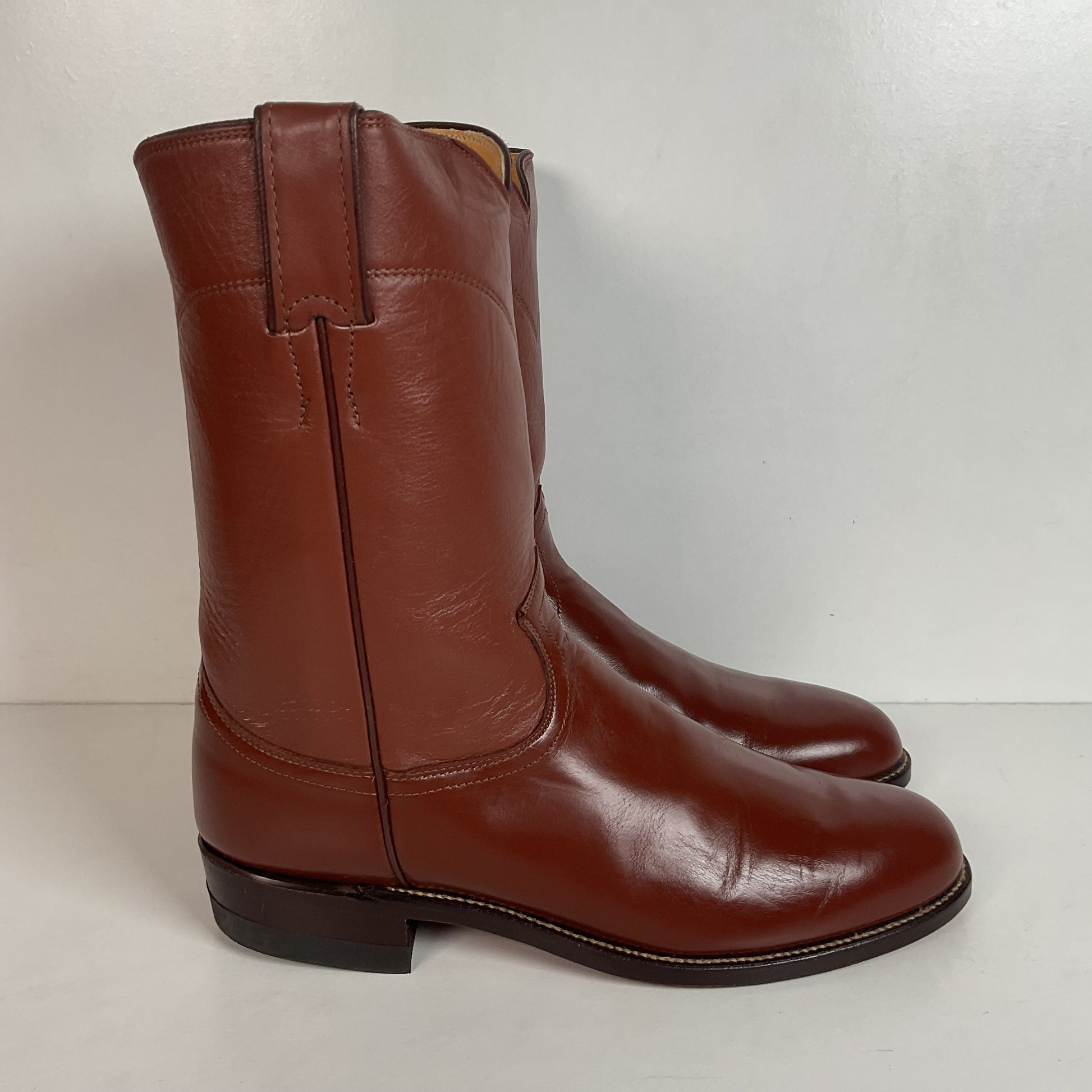 Vintage 1970s Justin Brown Cowgirl Roper Boots 8.5 B USA Made Calfskin