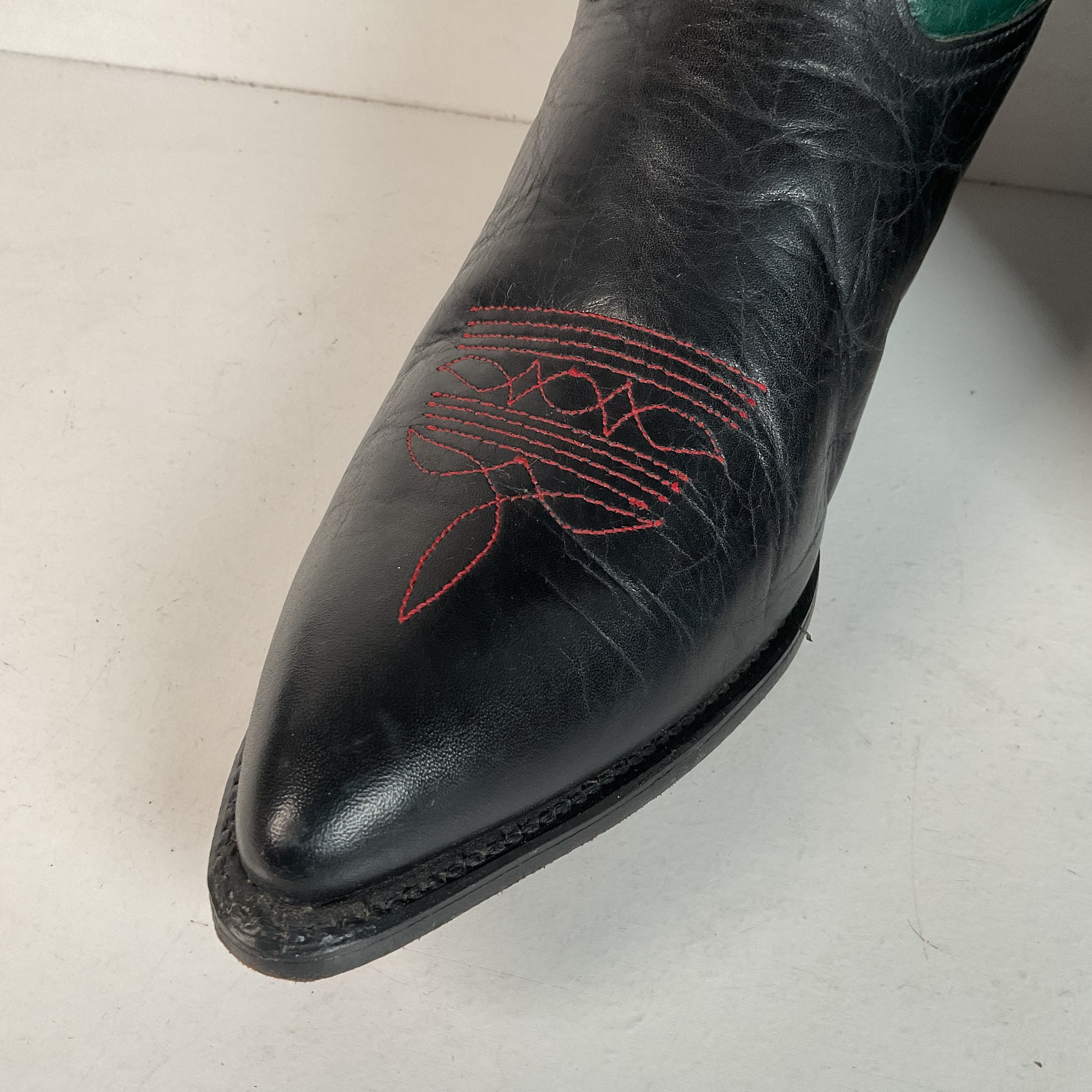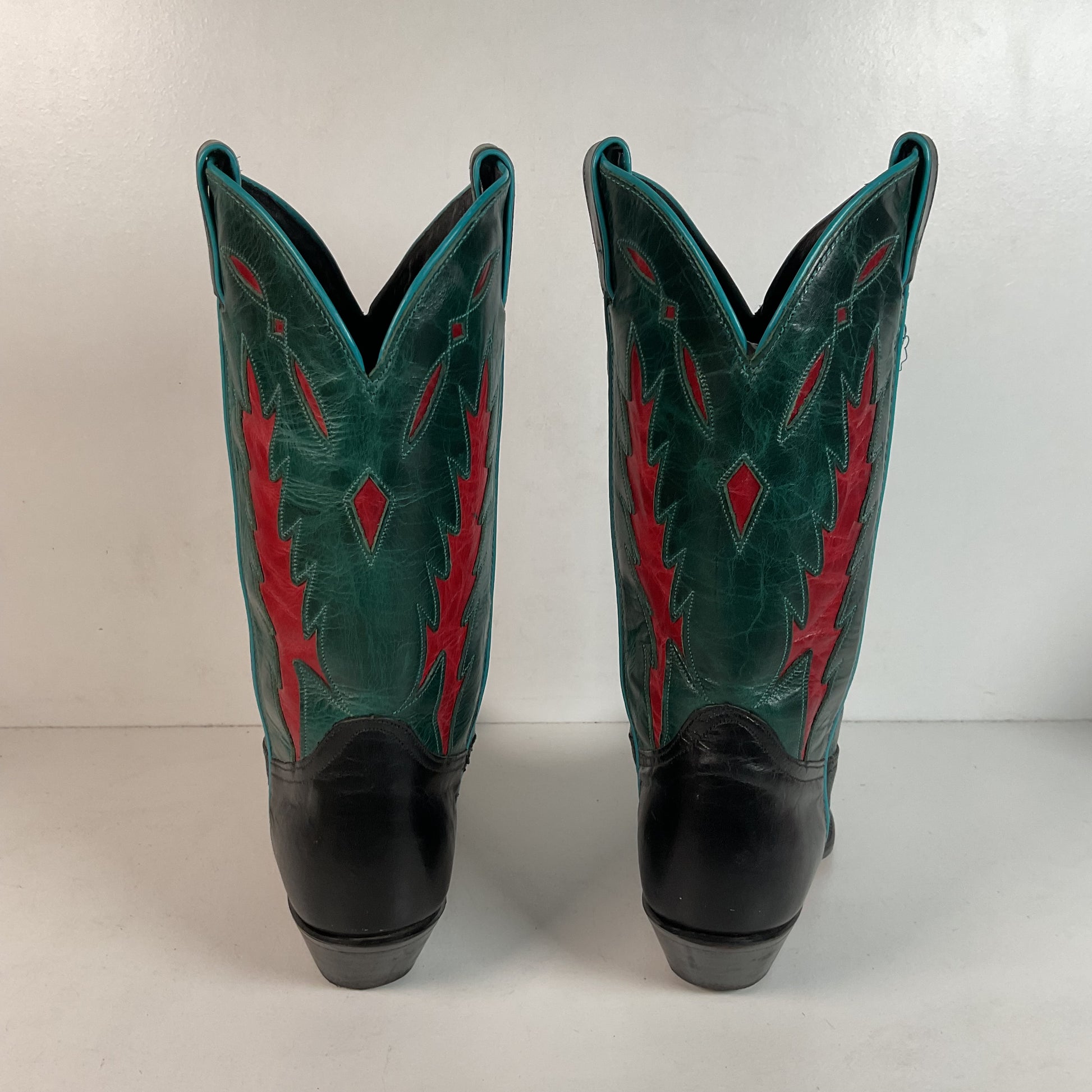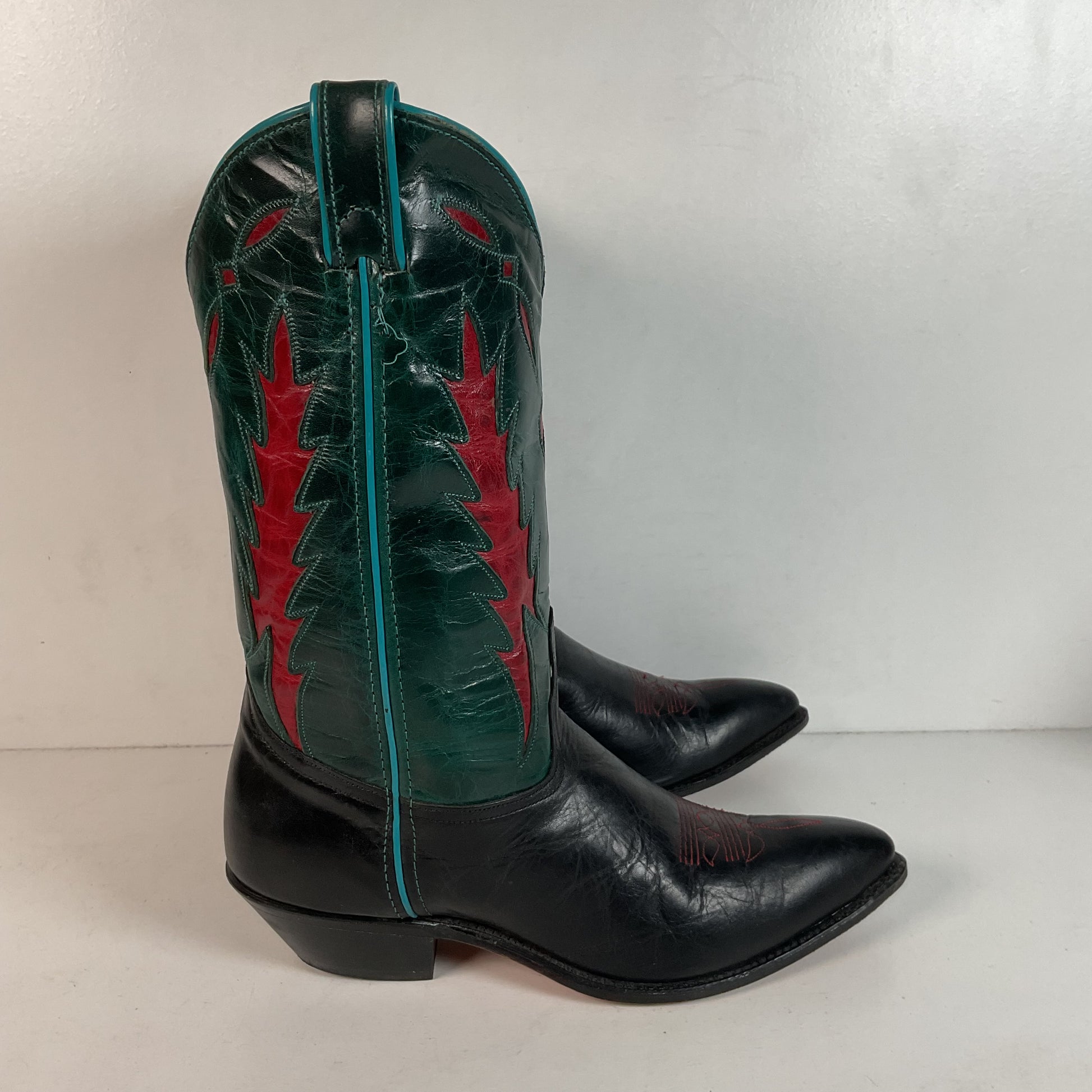 Vintage Dan Post For Code West Cowgirl Boots | Tooled Green Upper | Women’s 10 M