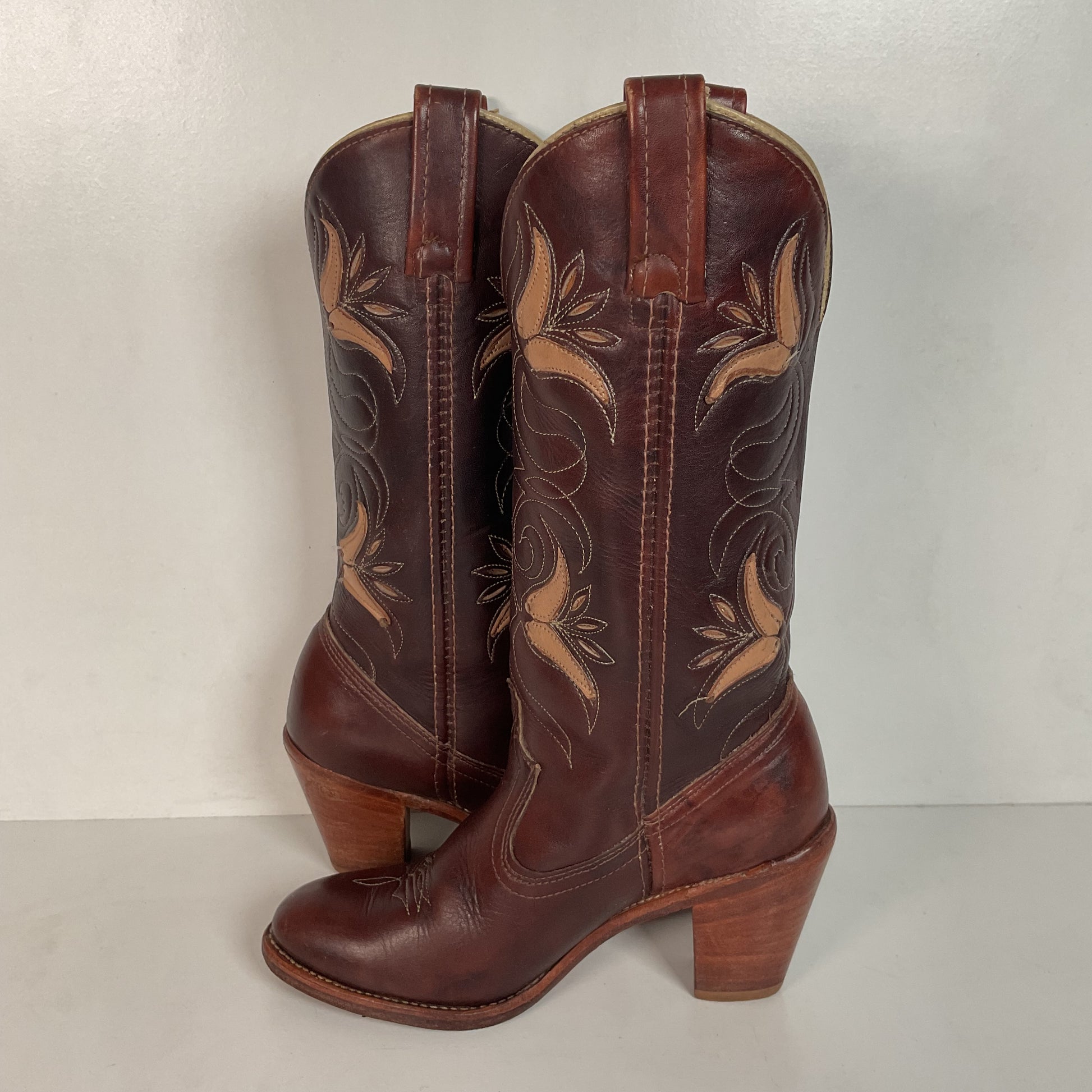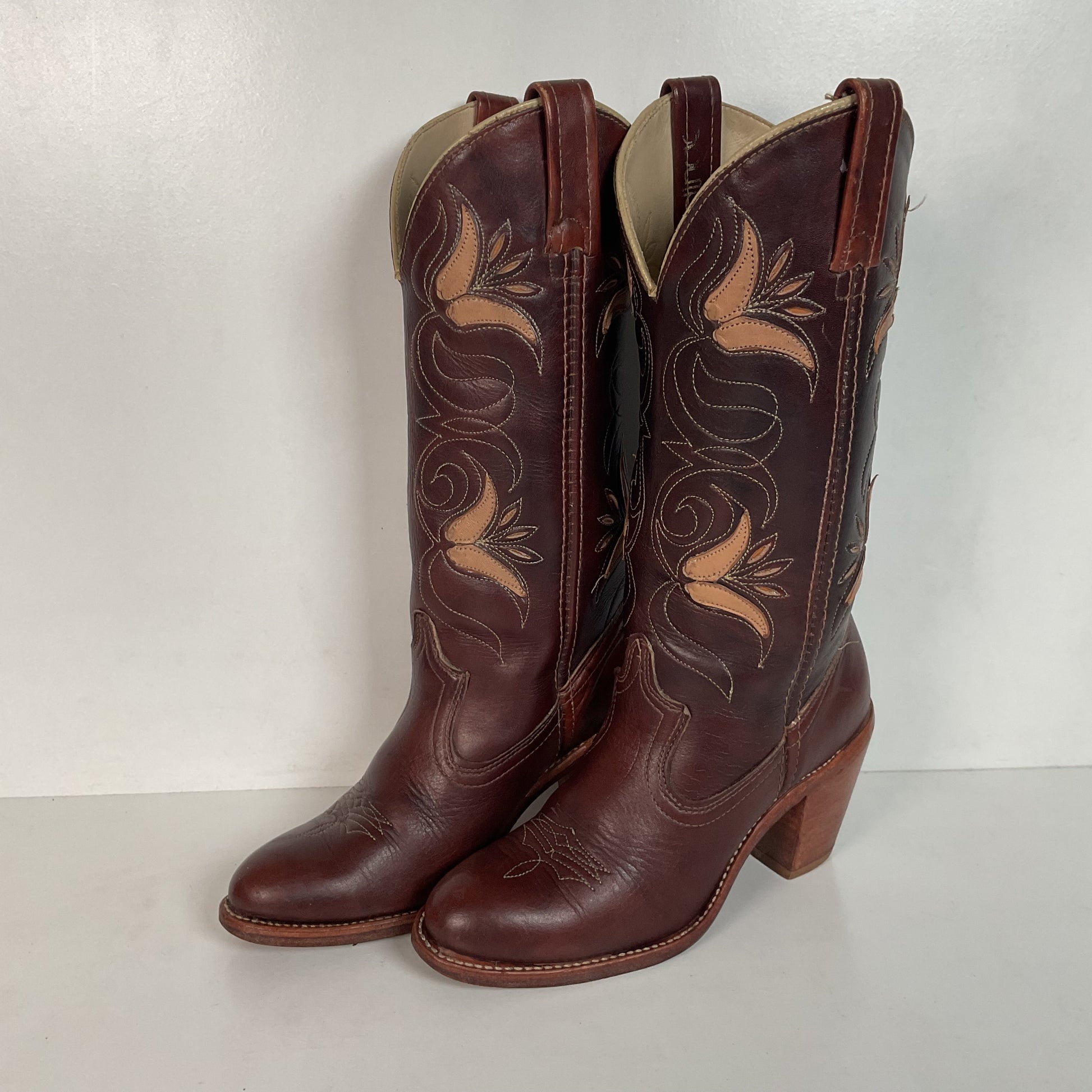 Vintage Dingo Acme Tulip Cowgirl Boots 6 M Tooled USA Made