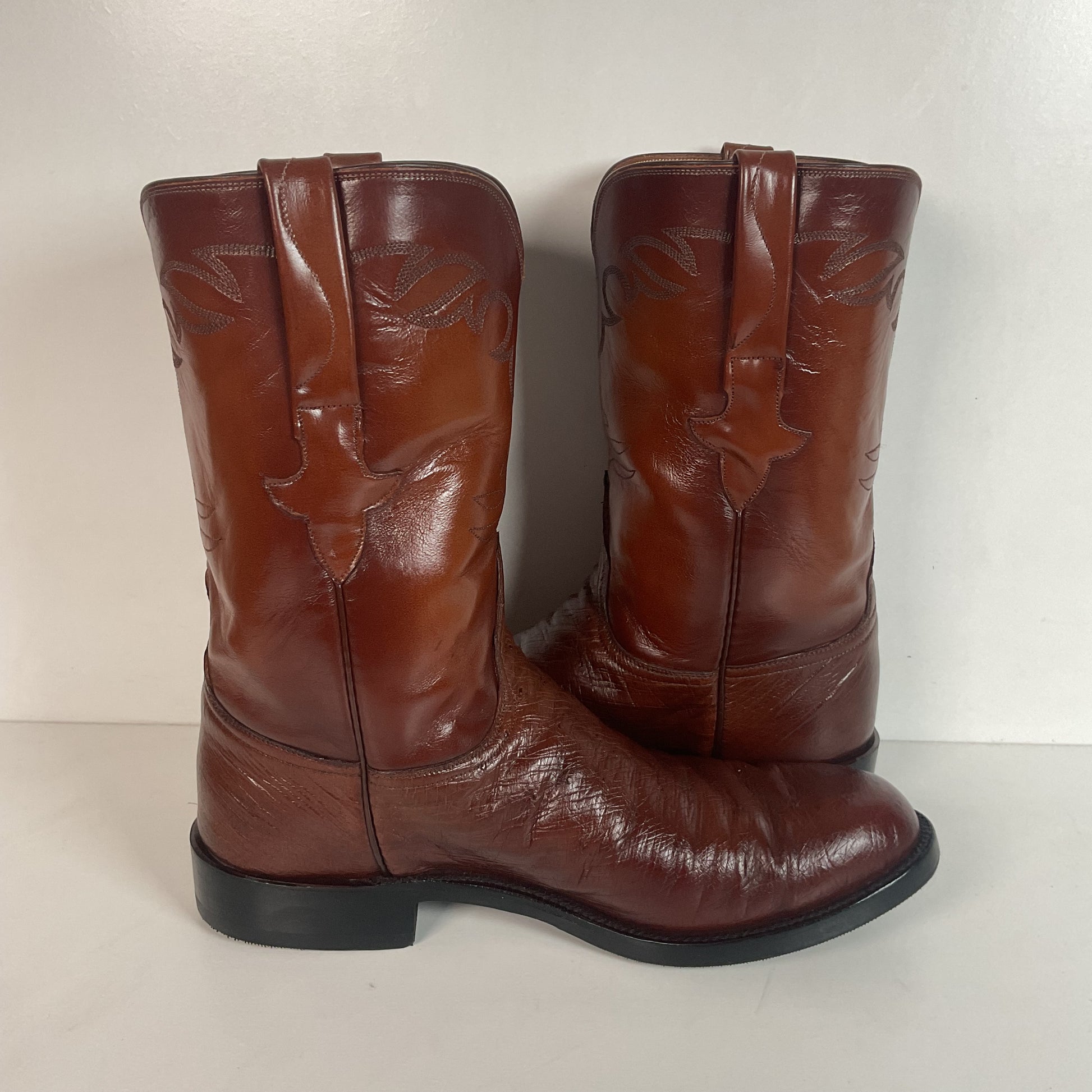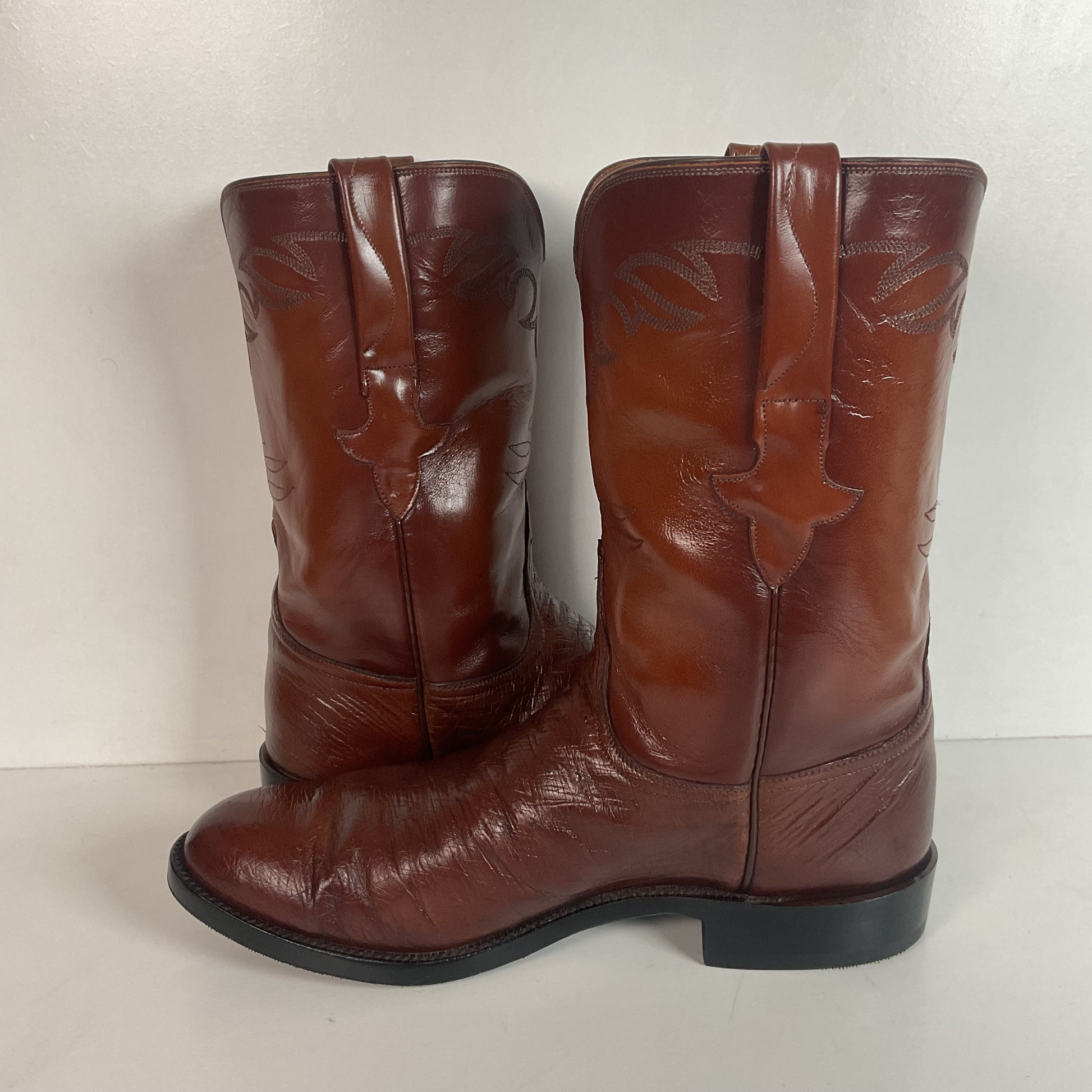 Vintage Lucchese Handmade Smooth Cigar Ostrich Roper Boots 10 D Exotic Cowboy