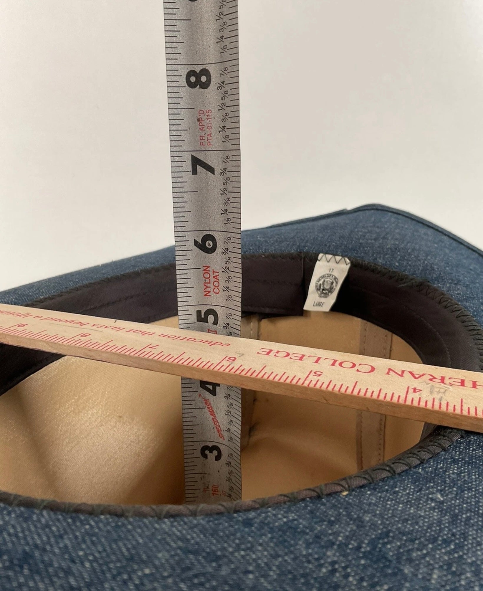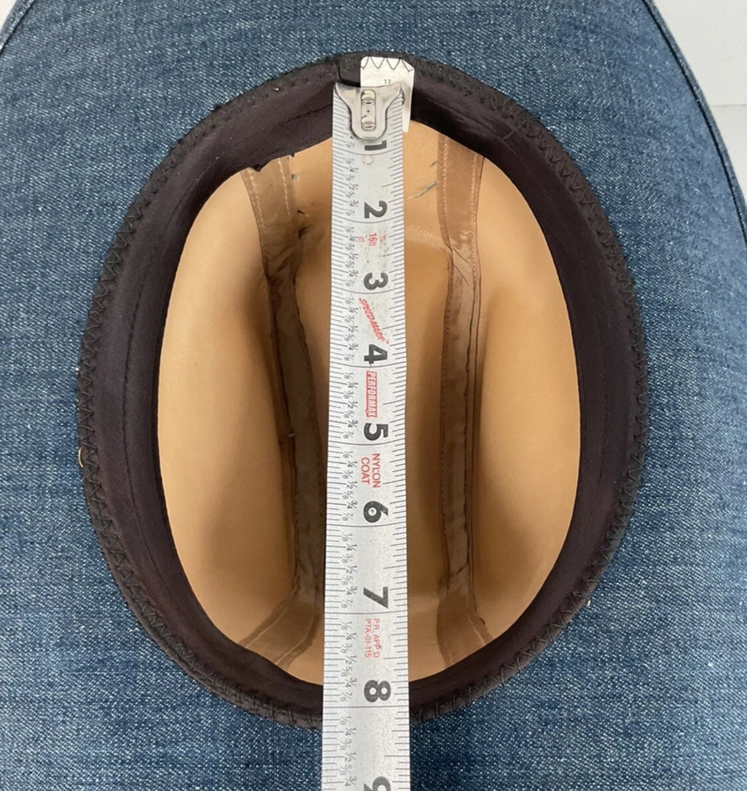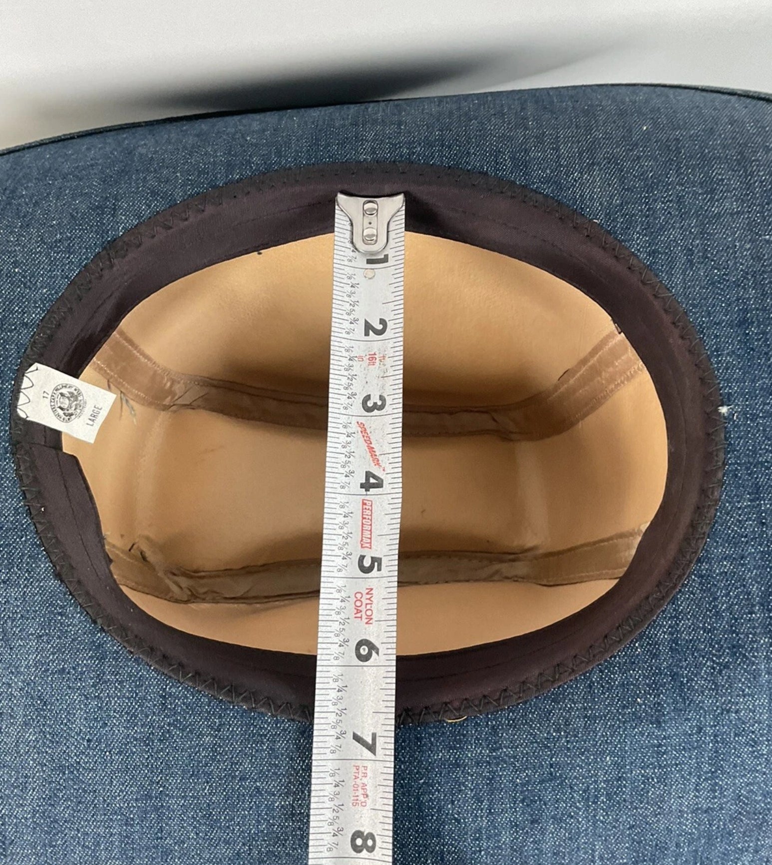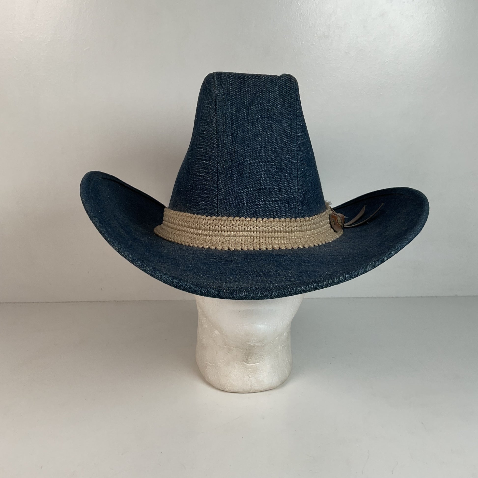 Vintage Blue Denim Cowboy Hat Large USA Union Made Brass Horse Accent